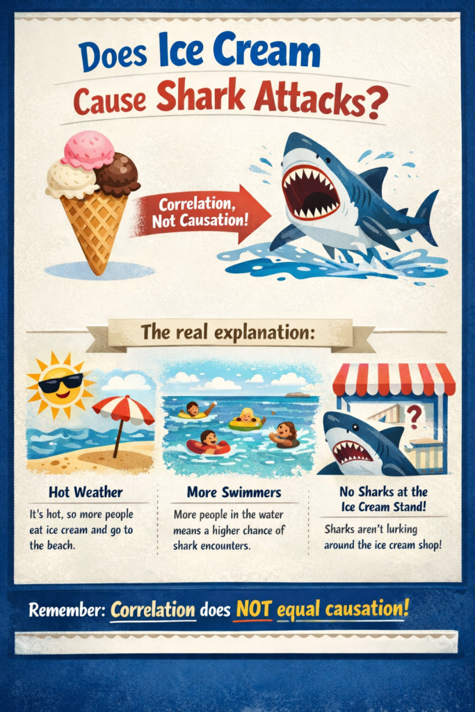 A correlation may show a relationship, but it does not automatically prove cause and effect.